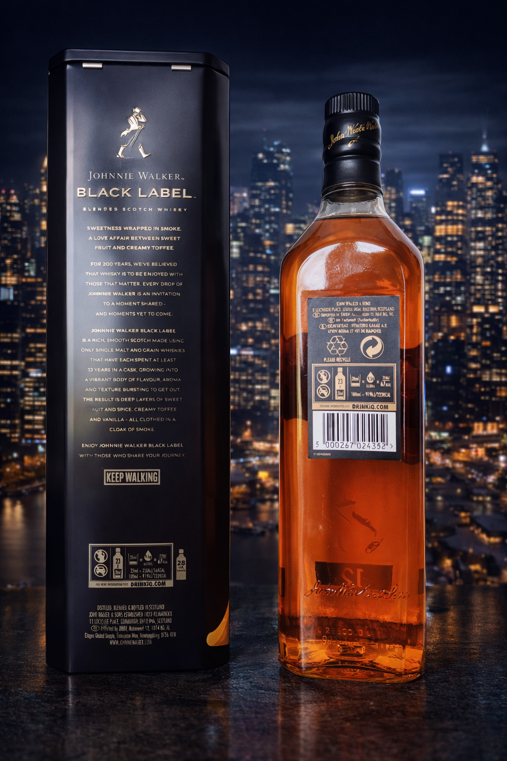 Johnnie Walker Black Label 12 Years is een icoon in de wereld van blended Scotch whisky. Deze editie, gepresenteerd in een elegante Limited Edition metalen koker, weerspiegelt het tijdloze karakter van het merk: stijlvol, krachtig en doordacht samengesteld uit meer dan dertig zorgvuldig geselecteerde malt- en grainwhisky’s.